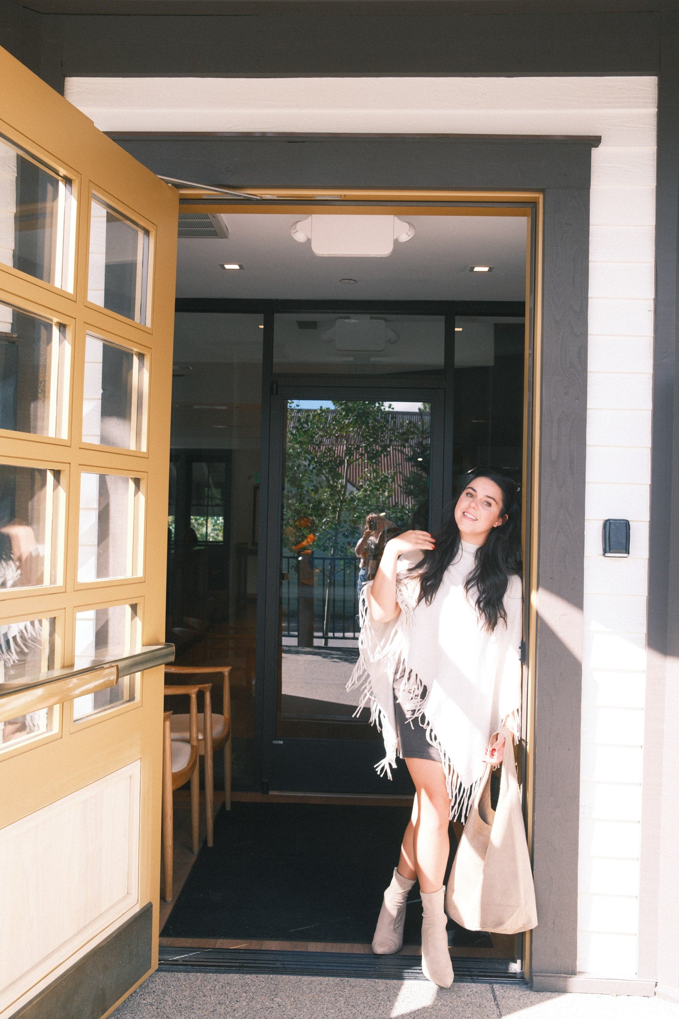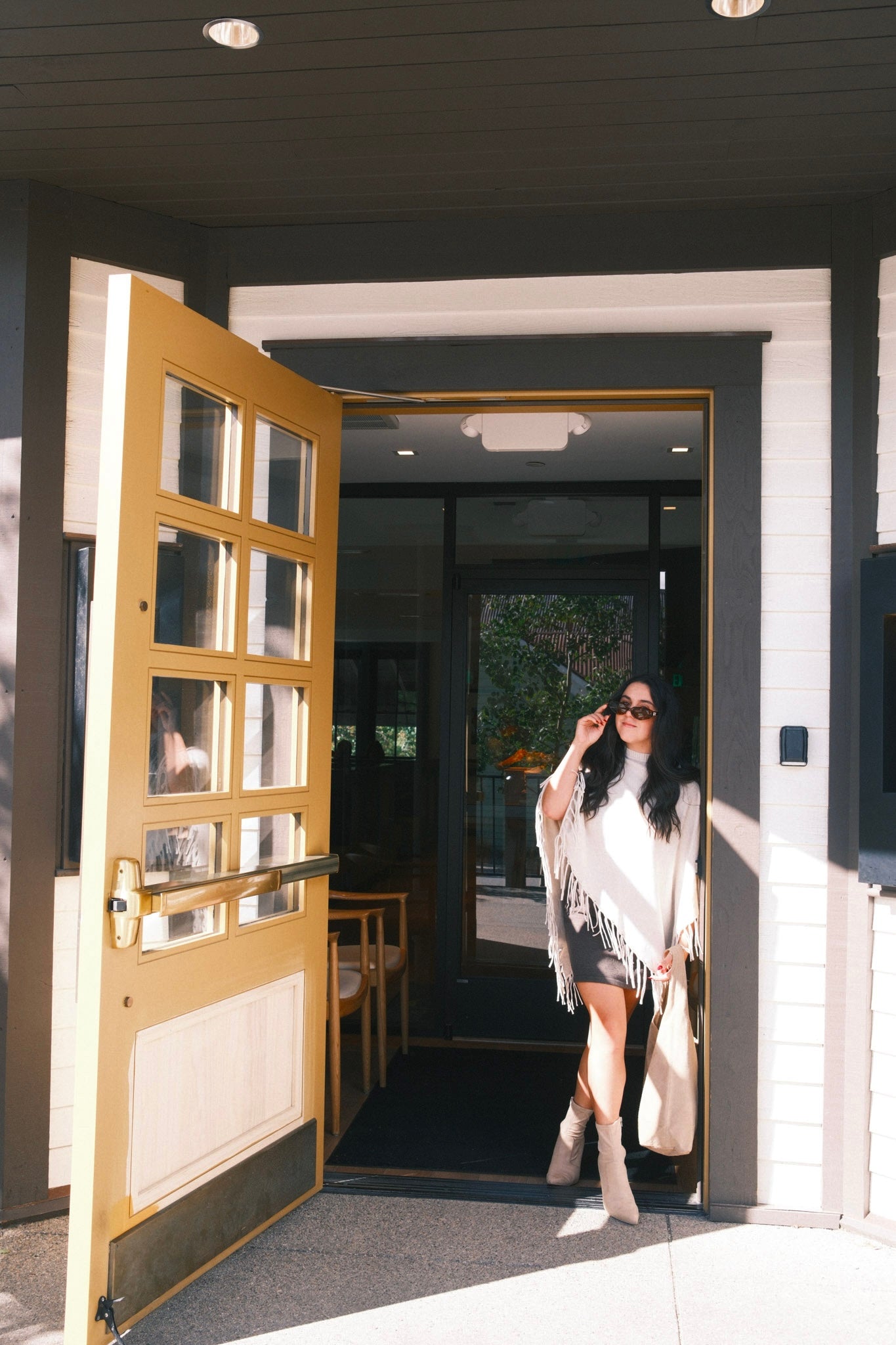 Knit poncho with fringes