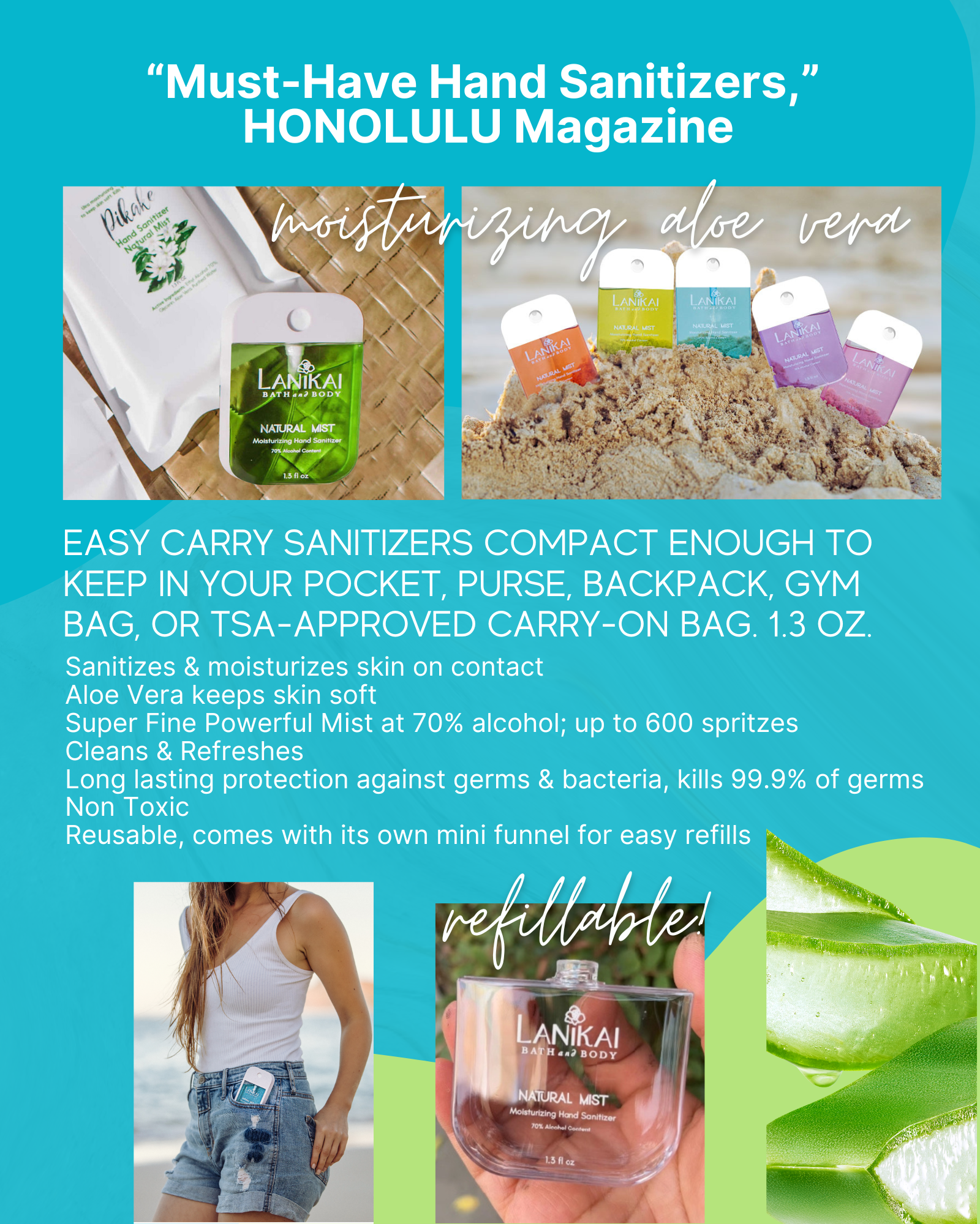 Natural Travel-Size Pocket Hand Sanitizer, Refillable 1.3 oz